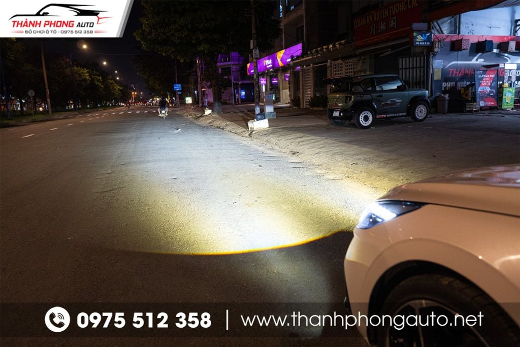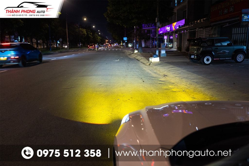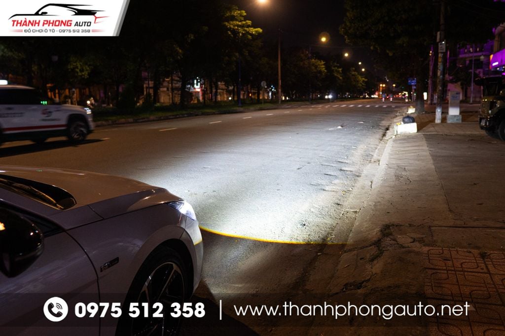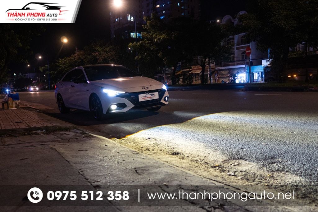 Khi độ bi gầm tăng sáng cho Hyundai Elantra N Line, người lái sẽ cảm nhận ngay sự khác biệt rõ rệt so với hệ thống đèn nguyên bản. Ánh sáng phát ra rộng hơn, xa hơn và tập trung hơn, giúp bạn dễ dàng quan sát mặt đường, vạch kẻ, chướng ngại vật hoặc xe ngược chiều ngay cả khi chạy trong đêm tối hoặc điều kiện mưa lớn, sương mù dày đặc.